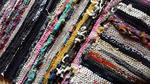 友人にいただいた絹などの布を裂いて作品を作ってみた。これは作品の一部分。