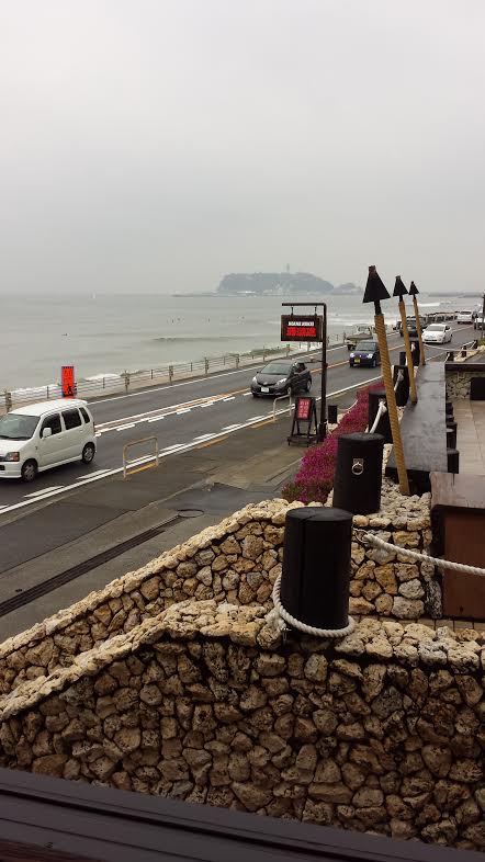 鎌倉由比ガ浜。江ノ島が霞んできれい。