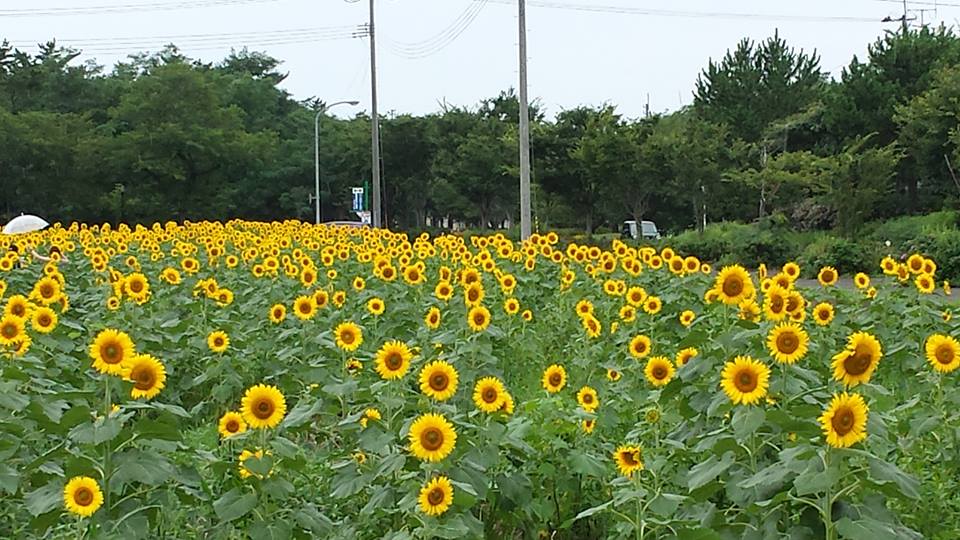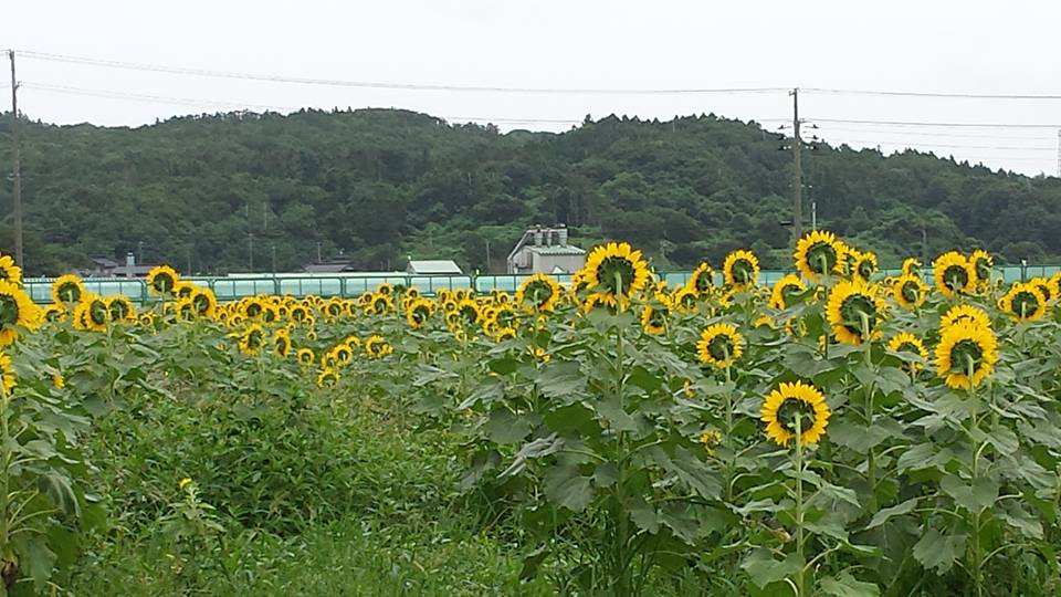 向日葵畑。 秋田は今が盛りです。